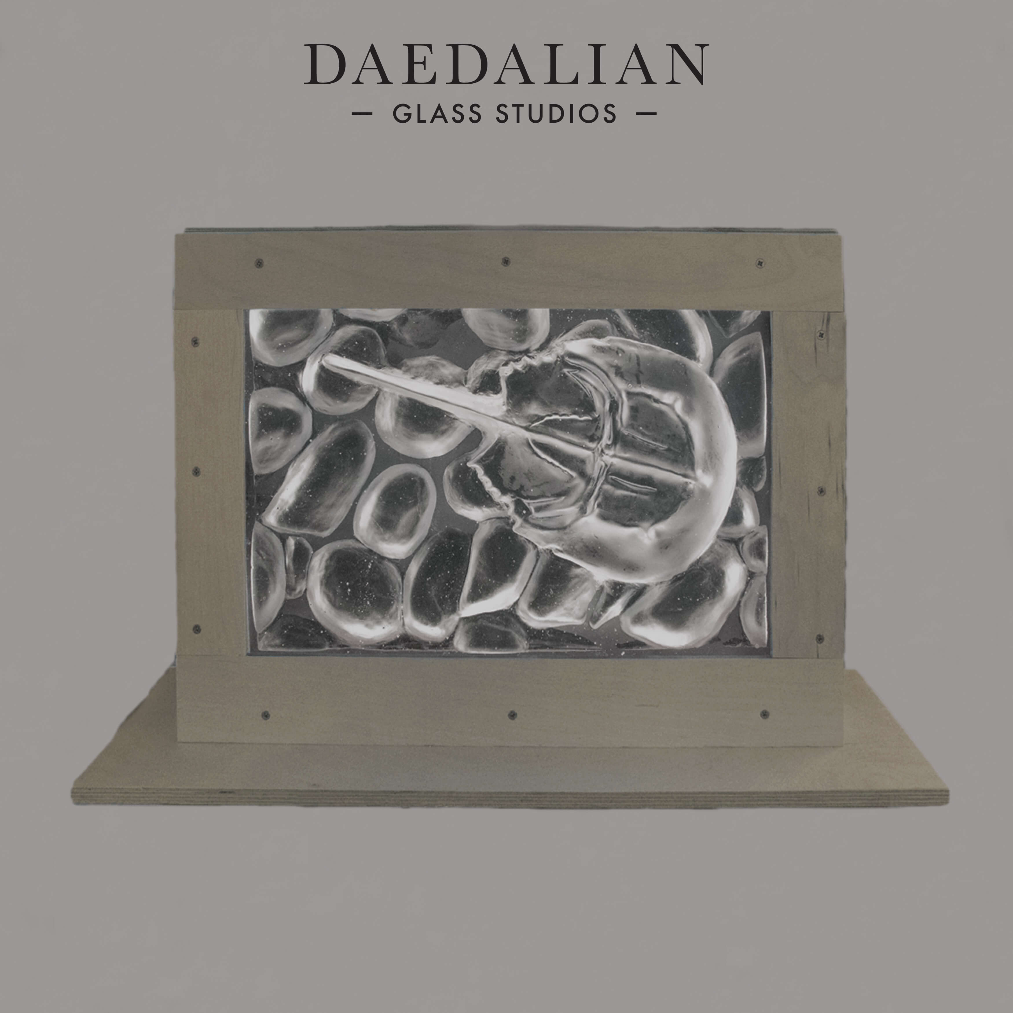 The production of cast glass is, in itself, an art form. Here, molten glass is expertly directed into a mould, solidifying into precise shapes that capture intricate details. Daedalian Glass Studios uses a variety of moulds – plaster or sand moulds – which uphold the high standards required for extraordinary detail and quality.
